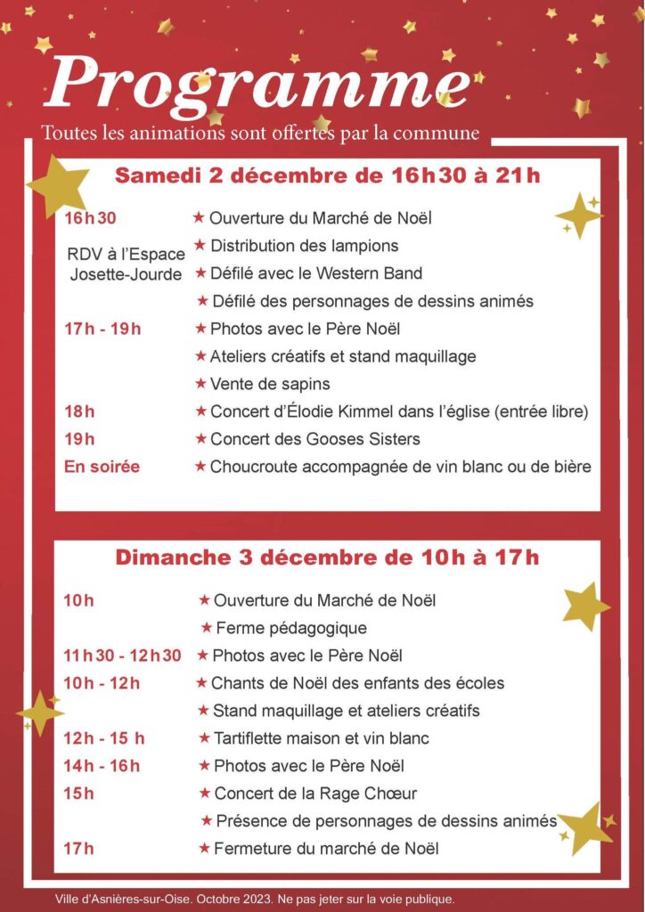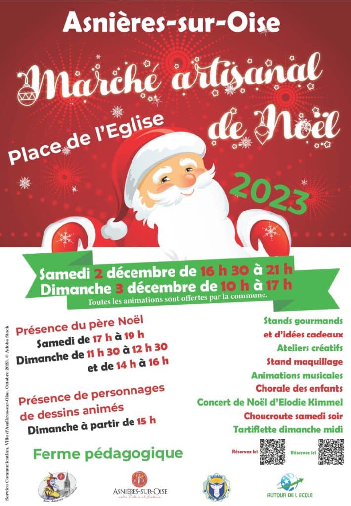Venez découvrir le marché artisanal de Noël d’Asnières sur Oise , le week-end du 2 et 3 décembre 2023, sur la place de l’église !